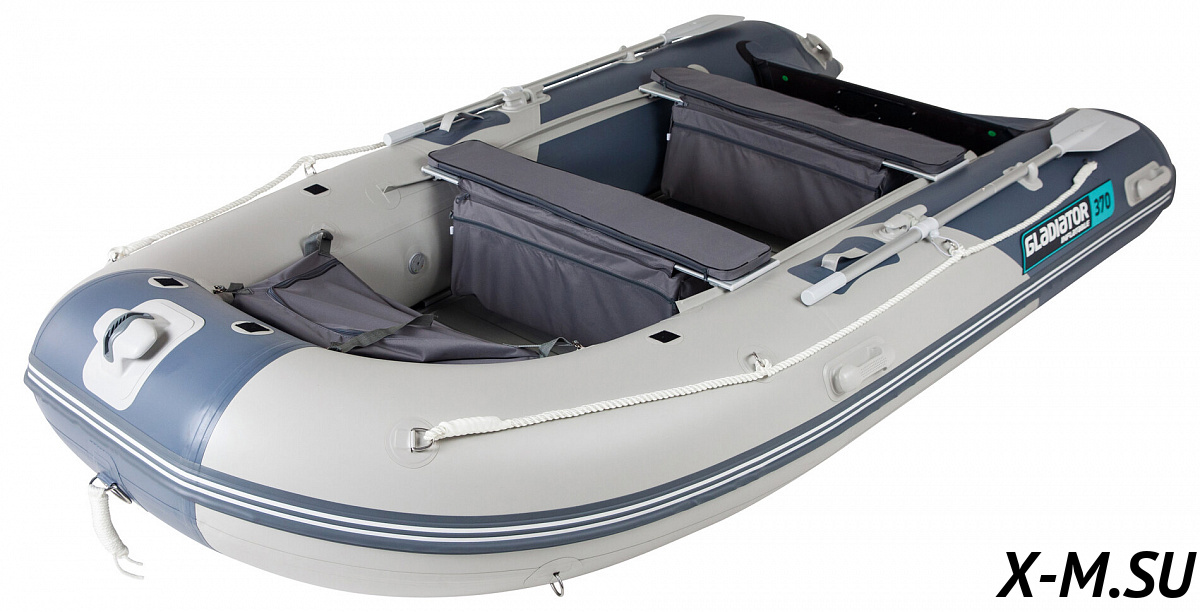 Выбирая лодку Gladiator C 370 AL серии Active, вы получите максимум удовольствия от ее использования, ведь конструкторы позаботились не только о технической функциональности, но и об удобстве. Курсовую устойчивость лодке обеспечивает киль, стационарный транец позволяет установить на нее мотор до 30 л.с. и перемещаться на дальние расстояния или кататься с ветерком с бананом, ватрушкой, лыжником.