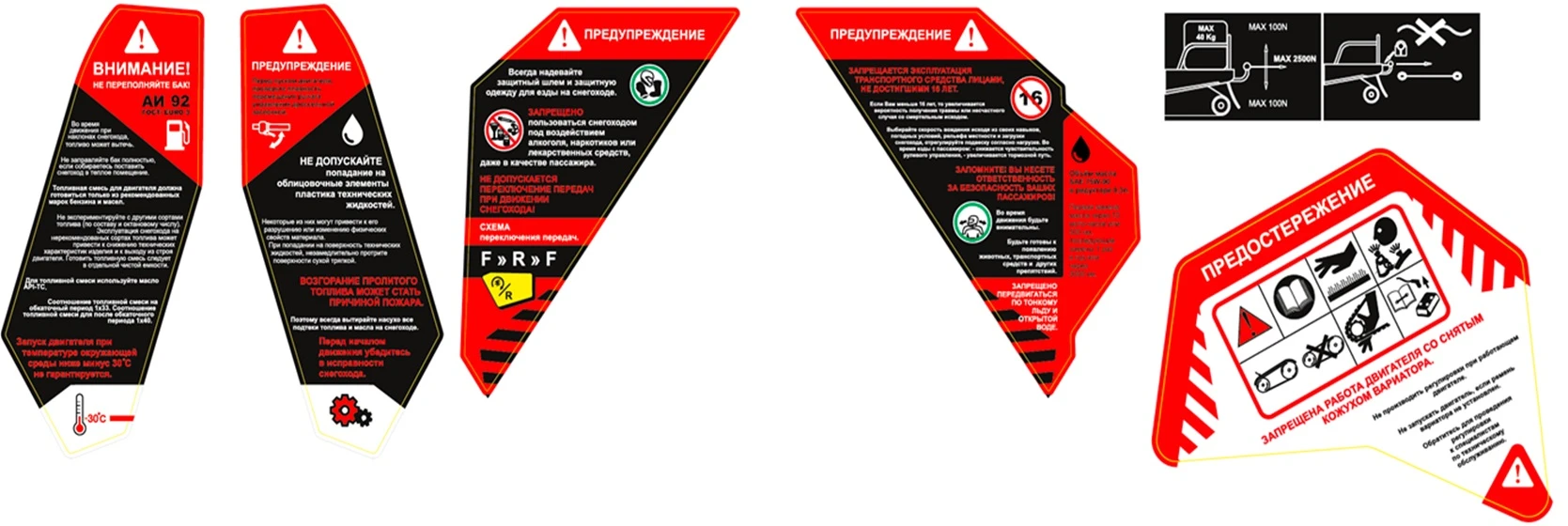 Наклейки предупреждающие снегохода STELS STAVR MS600